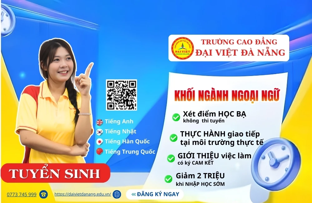 Tại Cao đẳng Đại Việt Đà Nẵng, chương trình đào tạo khối ngành Ngoại ngữ được xây dựng theo định hướng thực tế, giúp sinh viên phát triển toàn diện cả về ngôn ngữ và kỹ năng nghề nghiệp.